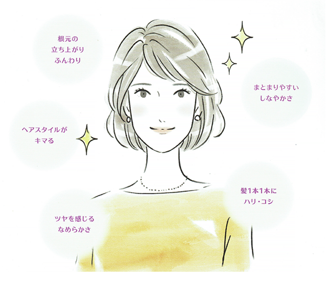 根元からふんわり弾む、美しい髪へ。 |